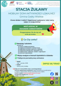 07 kwi AKADEMIA ANIMATORÓW- REKRUTACJA Posted at 11:46h in Aktualności, Bez kategorii, Strona główna, ZakladkaZulawy, Zulawy2 by nova 0 Comments 0 Likes Do pobrania: REGULAMIN REKRUTACJI ANIMATORA LOKALNEGO FORMULARZ ZGŁOSZENIOWY-AKADEMIA ANIMATORA