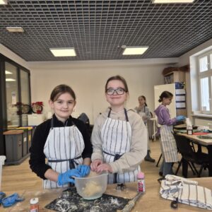 Dziewczynki piekły pyszne ciasteczka w naszym Domu Sąsiedzkim i rozdawały je przechodniom oraz częstowały lokalnych przedsiębiorców. Dzięki Wam spotkały mnóstwo uśmiechów i ciepłych słów – było naprawdę słodko i radośnie! 💛